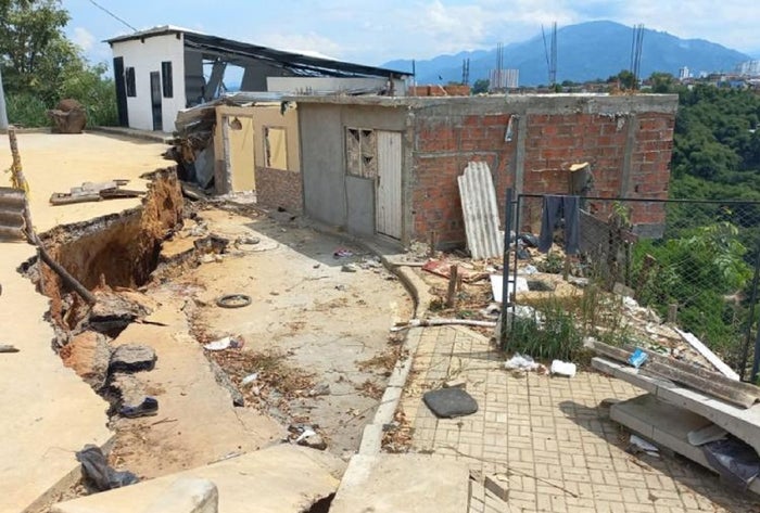 La emergencia se presentó en marzo de este año cuando apareció una grieta en la vía principal, la cual ha ido creciendo afectando la calle, un Ágora que recientemente había entregado la Alcaldía y varias viviendas alrededor.