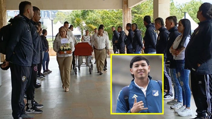 Entre dolor y lágrimas, familiares, amigos y jugadores despidieron a Santiago Castrillón el joven promesa del fútbol que falleció tras desplomarse en una cancha de la ciudad de Bogotá.