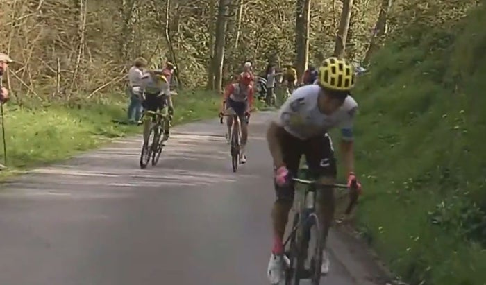 Pero al bogotano lo alcanzaron James Knox (Soudal-Quick Step) y Juanpe López (Trek Segafredo), que le soltaron poco después, aunque Cheves volvió a meterse en la pelea a unos cuatro kilómetros del final.