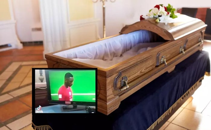 En el video se ve que los hombres acomodaron un televisor al lado del ataúd y disfrutaron del partido en ese inusual lugar. Muchos consideraron esto como un irrespeto.