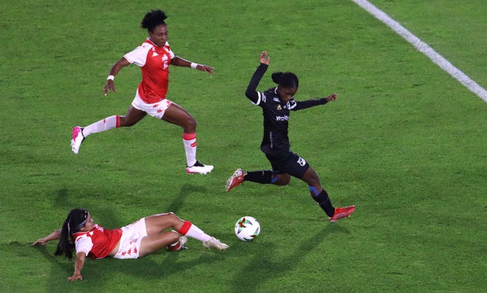 Inaldo Pérez - Antena 2 Linda Caicedo (verde), jugadora de Cali en la Liga Femenina.