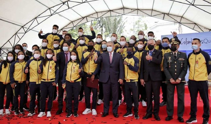 El presidente colombiano, Iván Duque, recibió este jueves a una parte de la delegación deportiva que compitió en los Juegos Olímpicos de Tokio, entre ellos cuatro de los cinco que lograron medallas.