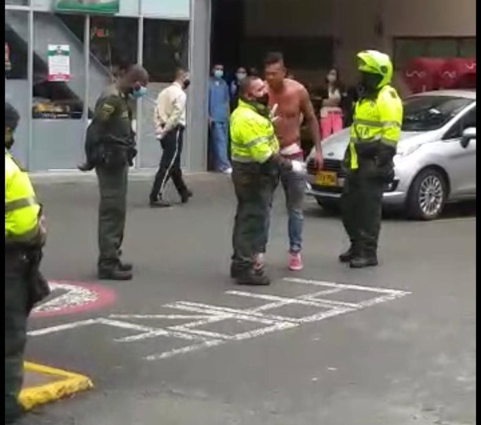 Sin camisa y con las manos en alto, el volante de Millonarios, en aparente estado de embriaguez, aseguró que fue agredido luego de que sus familiares llamaron a las autoridades para que lo sacaran de una vivienda en este municipio del sur del Valle de Aburrá.