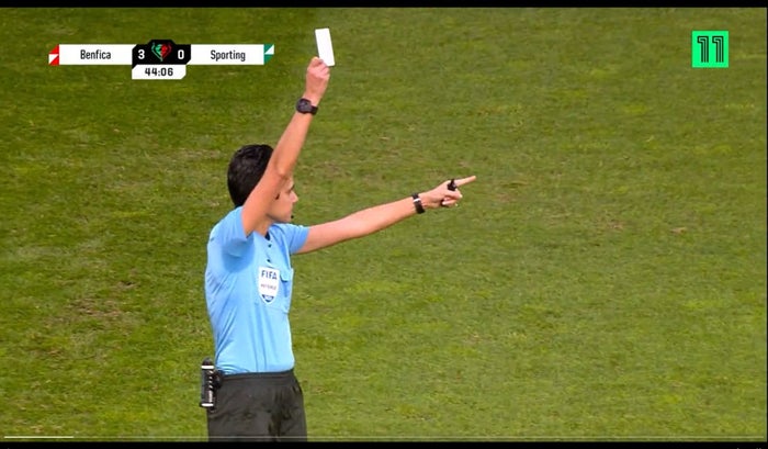 En medio de la final de la Copa femenina de Portugal se vivió un hecho histórico, una jueza sacó una tarjeta de color blanco durante el partido entre Benfica y Sporting de Lisboa.