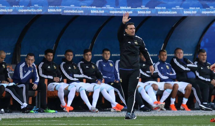 "Respecto a los cambios que tenemos que hacer por sanción, estamos esperando la evolución de algunos jugadores como el Papu Gómez y Lucas Ocampos para definir el equipo vs. Colombia".