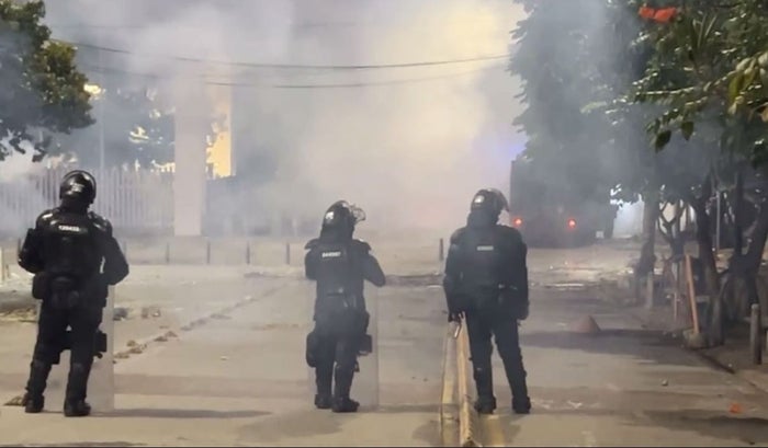 “Debido a los actos criminales que están cometiendo los terroristas encapuchados en los alrededores de la UIS y tras haberse agotado todas las instancias de diálogo, no queda otra opción que la intervención de la Fuerza Pública para mantener el orden”, ordenó Beltrán.