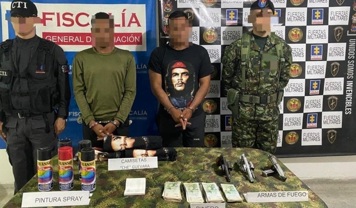 "Se logró ubicar a estos sujetos, responsables de amedrentar a los administradores y dueños de fincas ganaderas en la región, con el fin de cobrar dineros a cambio de supuestamente salvaguardar su integridad", confirmó el brigadier general Oscar Eduardo Vera Peláez, comandante Quinta Brigada.
