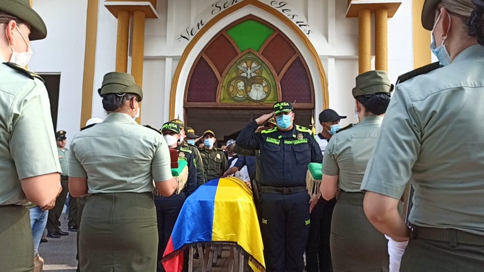 Con honores fue despedido el Policía asesinado en ataque terrorista en El Cerrito