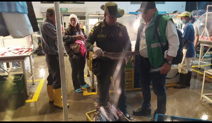 "Es importante manifestarle a la comunidad que hace pocos minutos se logró incautar 1.031 kilos de pescado que lamentablemente no cumplía con la talla mínima para la comercialización de en el mercado es asimismo, se logró incautar un pescado que lamentablemente también tenía fallas en las condiciones de salubridad", señaló el comandante de la Policía Metropolitana de Bucaramanga, el general José James Roa Castañeda.