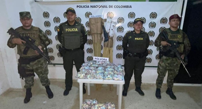 “En operativos realizados en el sector La Arenera, uniformados del Modelo Nacional de Vigilancia Comunitaria por Cuadrantes junto al Ejército Nacional, lograron la incautación de 150 unidades de voladores de 03 tiros y 9.800 totes, con un peso de más de 25 kilogramos”, señalaron voceros de la Policía del Magdalena Medio.