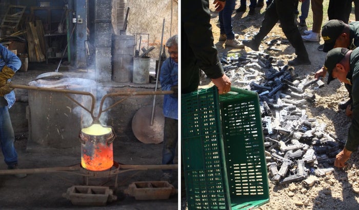 La destrucción mecánica se realizó mediante el empleo de una pulidora y los residuos fueron llevados a una empresa siderúrgica para su respectiva fundición.
