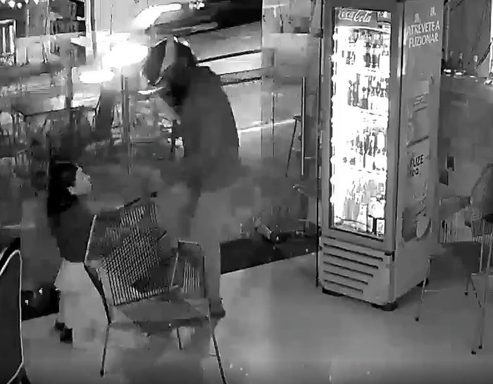En un video que circula por redes sociales se evidencia cómo los hombres con cascos puestos y armas patearon a un hombre que se encontraba en el lugar, luego arrinconaron a los clientes que estaban allí y comenzaron a exigirles, de manera violenta, los objetos de valor a cada unas de las personas.