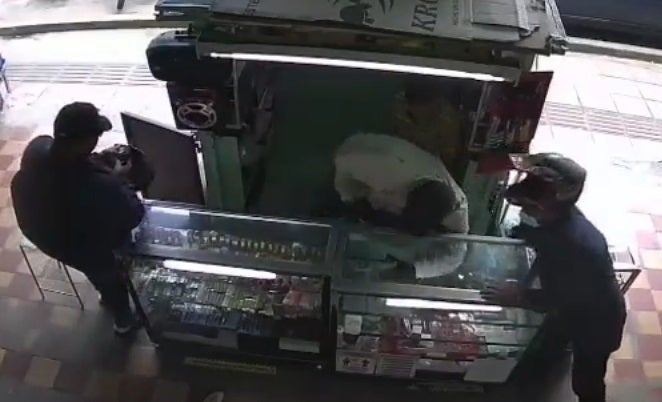 Este hurto quedo registrado en cámaras de seguridad,se observa como los delincuentes entran con toda calma, uno de los sujetos saca el revólver y le apunta al vendedor, mientras que el otro sujeto ingresa al local y comienza a robar cadenas, pulseras y anillos de oro entre otras cosas, y mientras tanto el empleado asustado se hace para atrás, pero llama la atención como el delincuente de un momento a otro le pega en el estómago a esta persona y continúa sacando todos los elementos y luego los camufla dentro de un bolso.