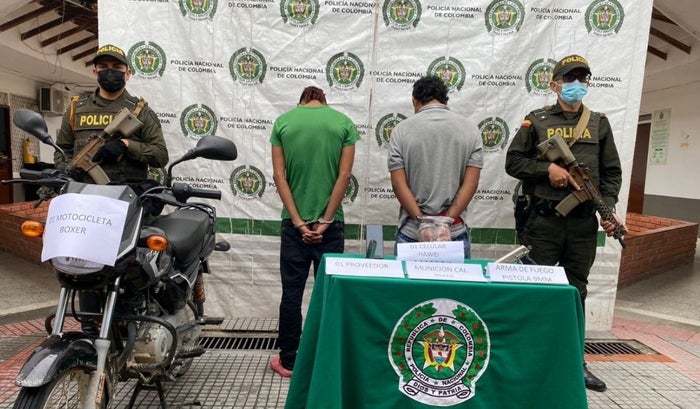 “Se logró la aprehensión de dos sujetos, uno de 19 y otro de 22 años, por tentantiva de homicidio, luego de que se movilizaran en una motocicleta y dispararan contra la patrulla”, señaló el coronel Franklin Cruz, comandante del Departamento de Policía de Santander.