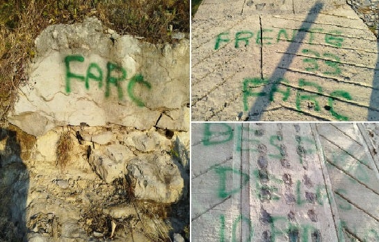 Suministradas por la comunidad En Bolívar, Santander, aparecen grafitis de las disidencias de las Farc, las autoridades investigan