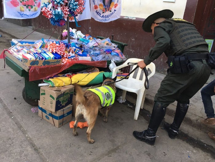 El Comandante de la Policía San Gil indicó que para el hallazgo de la pólvora fueron fundamentales los perros antiexplosivos de la institución.