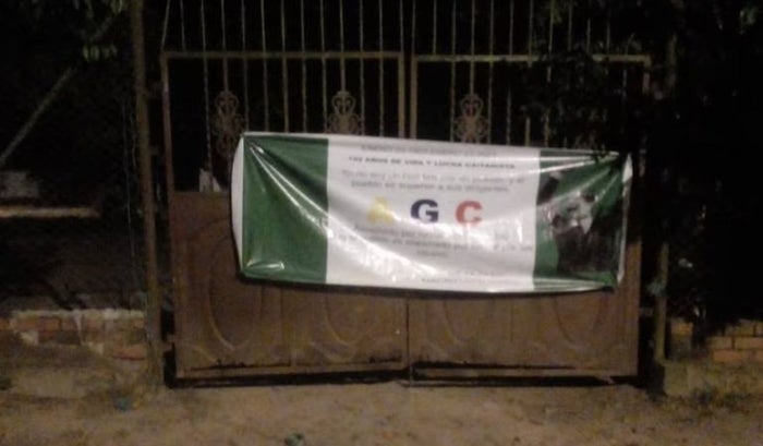 "Los capturados estaban en posesión de dos banderas alusivas a las AGC y aerosoles, lo que los acusa de financiación del terrorismo y de grupos de delincuencia organizada y administración de recursos relacionados en actividades terroristas y de la delincuencia organizada", agregó Teniente Coronel.