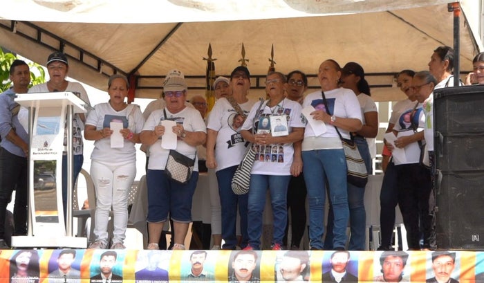 "Nelson García se encontraba en el bazar, salió un momentico en su moto y cuando iba en el trayecto del 9 de abril hicieron un retén paramilitar, lo tumbaron de la moto y se lo llevaron juntos con su compañero Wilson Pacheco. Desde ahí empezó la tortura el dolor. Seguimos la búsqueda de nuestros familiares, porque realmente necesitamos encontrar qué había pasado con ellos", indicó Luz Almanza, coordinadora Asociación de Familiares Detenidos Desaparecidos.