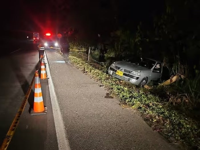 El vehículo, un automóvil con placas de Medellín, estaba a un costado de la transitada carretera.