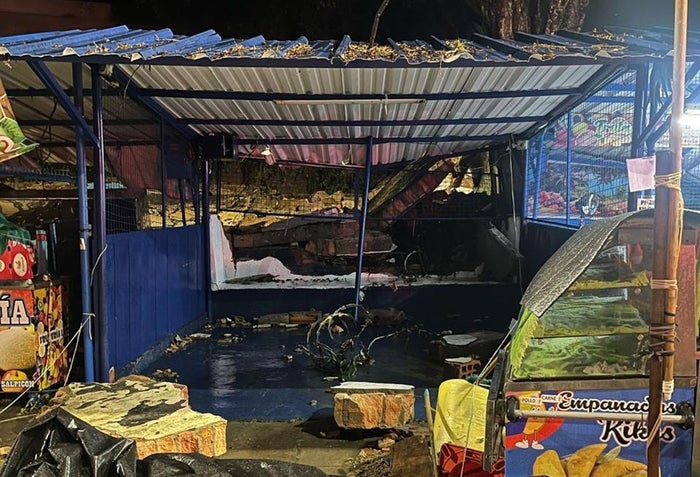 En ese punto colapsó parte del muro de cerramiento de la Institución Educativa Dámaso Zapata y en la caída de los escombros afectaron los puestos de comida.