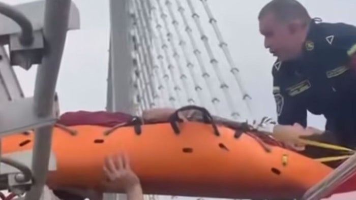 El hombre fue envuelto en una camilla de rescate por parte del cuerpo bomberil, y al momento de llegar a la superficie del puente provincial fue trasladado a un centro médico para evaluar su estado de salud.