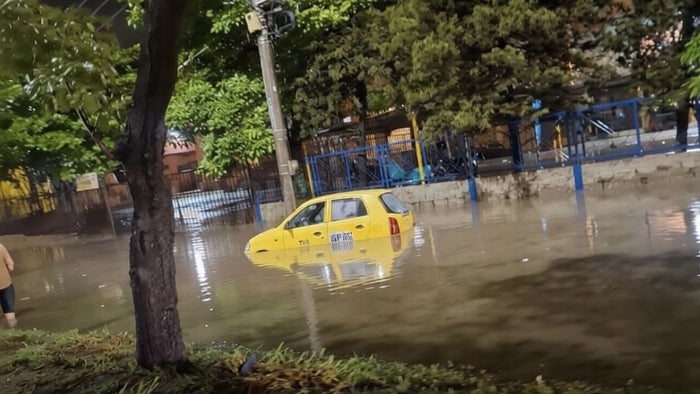 De hecho, se pudo evidenciar un vehículo de transporte público tipo taxi que estaba cubierto por agua, justo por encima del nivel de las llantas.