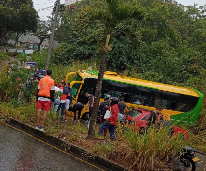 En videos que circulan en las redes sociales se puede observar que el conductor, dirige el bus al costado de la carretera, con el fin al parecer de poder detenerlo y evitar que una situación más grave se generara. En este momento es cuando el bus impacta con un carro particular de color rojo.