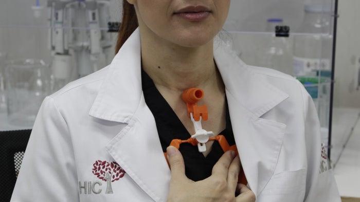 “Después del procedimiento, lo que se hace actualmente en todo el mundo es utilizar una especie de cordón o cinta que da la vuelta al cuello, pero que no impide que la cánula se mueva o se pueda salir. De ahí surgió la pregunta de cómo evitar que esto ocurra”, cuenta el líder del grupo de investigación Emicon.