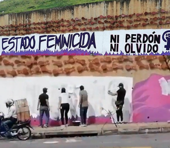 En los murales que habían pintado varias mujeres de todas las edades, habían expresiones como “Estado feminicida, Ni perdón Ni olvido! ; “Sin permiso, Bucaramanga antipatriarcal”, “Dónde están las desaparecidas, respondan” entre otros mensajes.