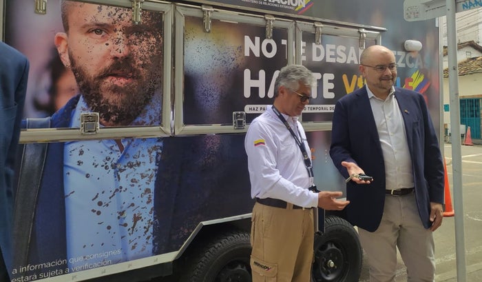 Con motivo al lanzamiento del Punto Visible, espacio que brindará atención a la población migrante en Bucaramanga, Gilles Bertrand, embajador de la Unión Europea en Colombia visitó la capital santandereana para cortar el lazó de la entrega simbólica del lugar, más una unidad móvil que le facilitará los procesos regulatorios a estas personas.