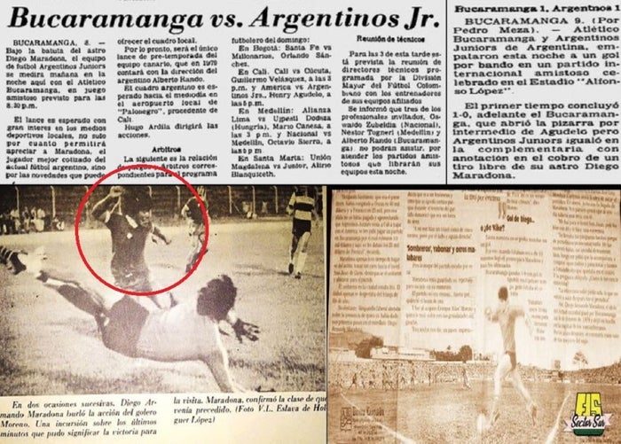 "En esa época se hacían en la pretemporada partidos amistosos internacionales y contra el Atlético Bucaramanga jugó Argentinos Juniors. En ese entonces ya empezaba a aparecer como una de las figuras del equipo Diego Armando Maradona, que para le época estaba muy pibe. El gol que anotó fue en ese partido y en sus inicios como tal", dijo el narrador González.