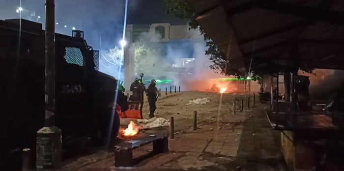 La policía metropolitana de Bucaramanga informó que durante toda la noche se han recibido bombas incendiarias, con artefactos como arandelas que pone en riesgo la vida de los uniformados, en donde por esta situación han resultado afectados policías en manifestaciones anteriores.
