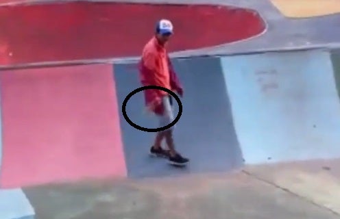 Esta vez en el video que fue captado por uno de los jóvenes que se encontraba practicando deportes extremos se observa cómo un hombre vestido de camiseta y chaqueta roja se acerca a donde están varios jóvenes practicando el deporte “skateboard”, uno de los deportistas se le acerca a decirle que se vaya y que abandone el lugar, pero el delincuente lo comienza a mirar fijamente como retándolo, con el pico de botella en su mano.