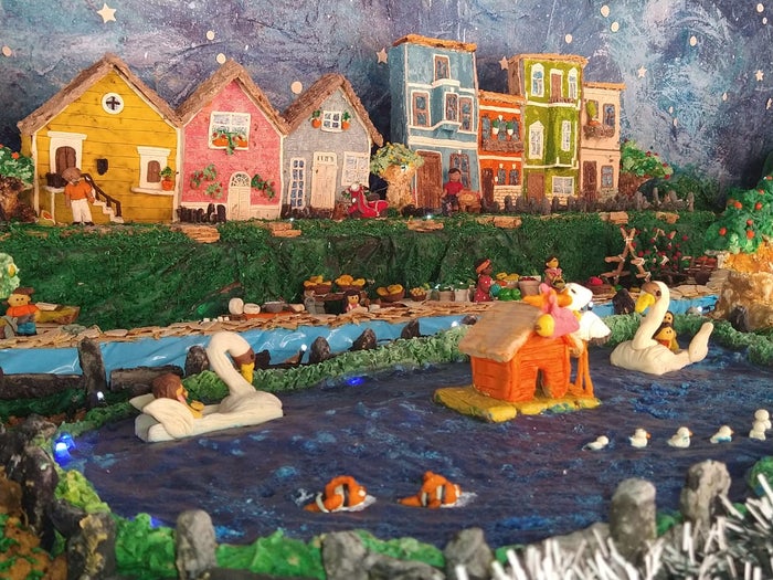Para hacerlo posible, siete personas se encargaron de elaborar cada figura, espacio y escenario en dulces de leche, de apio, arroz, azúcar de colores, arequipe y todos los dulces típicos de Floridablanca durante un mes, tiempo que les llevó tenerlo listo para el público.
