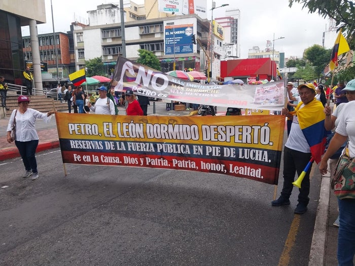 Durante el recorrido también se escucharon voces de respaldo a la Policía, incluso algunas personas llevaban pancartas en las que se leía “Respaldamos a nuestros militares y policías”.