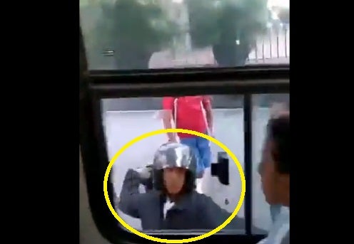 Este caso quedo registrado en un video que fue grabado por uno de los pasajeros, quienes asustados le exigieron al motociclista que se calmara antes de tomar cualquier represalia, pero éste hizo caso omiso, y decidió arrojar piedras en contra del bus hasta partirlos.