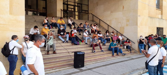“Acá en Santander hay dos personas que les ha tocado trabajar casi las 24 horas para poder liquidar. Nosotros no le ponemos problema a estas personas, la culpa es de la Dirección Ejecutiva Nacional y a los directores seccionales, porque no dan soluciones y esa plataforma no nos sirve”, indicó William Mora Cardozo, funcionario y uno de los manifestantes.