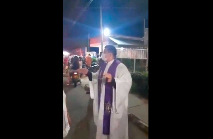Captura de video divulgado en redes sociales Sacerdote Álvaro Prada Vargas medió entre manifestantes y autoridades.