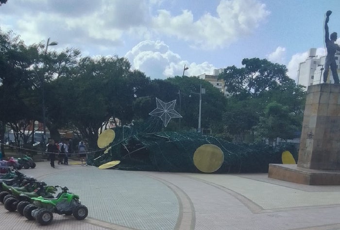 ¡No llegó al 24 de diciembre! Se cayó gran árbol de Navidad en Bucaramanga