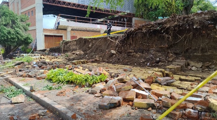 Otra de las emergencias también complicadas se registró con el colapso de un muro en el Instituto técnico Dámaso Zapata que quedó prácticamente destruido por la parte posterior izquierdo (colinda con la entrada de la Universidad Industrial de Santander) allí parte de la estructura quedó destruido.