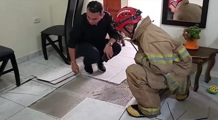 Por su parte el habitante de la vivienda que presentó afectaciones consecuencia de este fuerte temblor indicó “nosotros estábamos acostados y cuando se presentó el sismo quedamos despiertos de una vez, escuchamos el sonido fuerte de las tabletas del piso levantándose y se comienzan a partir, entonces de una vez salimos del apartamento como medida de precaución y de inmediato llamamos a los bomberos del municipio”.