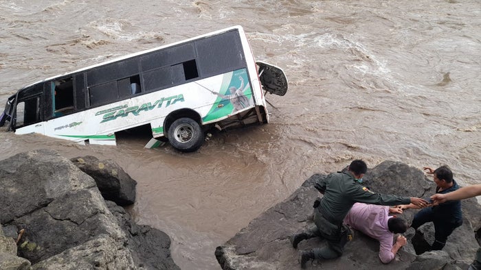 Al menos cinco personas heridas deja la caída de un bus al río Suárez en Santander