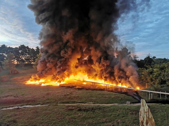 Posteriormente se inició un gran incendió que obligó al desplazamiento de unidades del Cuerpo de Bomberos, al tiempo que se detuvieron 300 pozos de la zona anexa.
