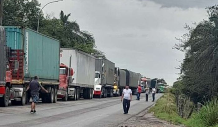 Los conductores de los tractocamiones generaron largas filas de carros en el tramo del peaje de La Gómez, sitio donde más se ha evidenciado caída de banca y huecos en la vía.