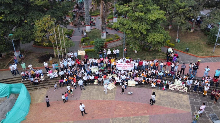 Entre los manifestantes se encontraban jóvenes que habían llegado de otros municipios de la provincia de Guanentá y de Bucaramanga para protestar contra algunas de las actuaciones del alcalde Ángel Triana Sánchez.