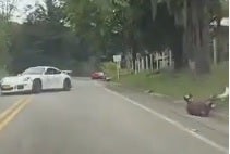 En el video grabado por los acompañantes del ciclista se observa cómo el conductor de un lujoso Porsche quiso adelantar en doble línea. Sin embargo, en el trascurso de la maniobra chocó con una camioneta y un ciclista que se encontraba practicando en la vía, el cual quedó con algunos traumas y laceraciones.