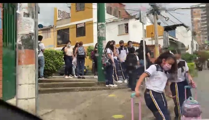 En un video quedó grabado cómo a las afueras de un colegio en Floridablanca se generan aglomeraciones durante la salida de los estudiantes que están en medio de la alternancia.