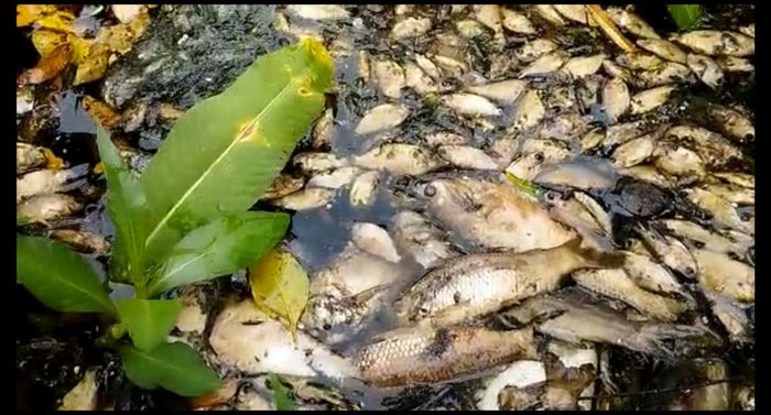 Comunidades en Puerto Wilches, Santander, denuncian la mortandad de centenares de peces por presunto derrame de material de empresas palmeras en la zona.