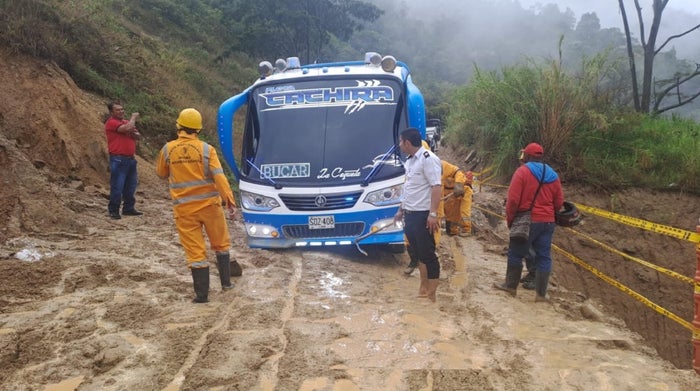 Desde el Instituto Nacional de Vías (Invías) aún no confirman la llegada de la maquinaria, situación que ha obligado a los conductores a remover por su cuenta las piedras y el lodo que se acumulan sobre la carretera.
