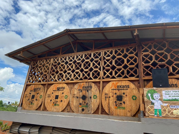 Nicolás de Guernon, gerente de Nexans Colombia, aseguró que "fue un encuentro de voluntades. Siempre hemos tenido la idea de reciclar y Bucarretes llegó con la idea de usar las carretas (la madera donde se transporta el cable) que no podemos usar para hacer construcción de edificios".